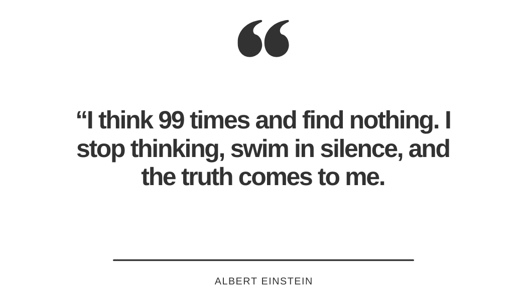 “I think 99 times and find nothing. I stop thinking, swim in silence, and the truth comes to me.”― Albert Einstein